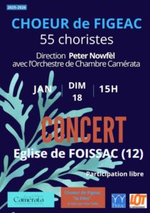 Concert « CHOEUR de FIGEAC » Dimanche 18 janvier à 15h à l’église de FOISSAC