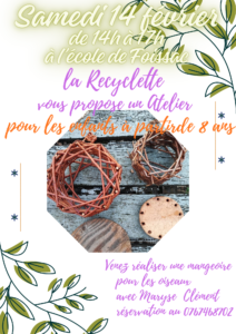 La recyclette organise un atelier « mangeoire pour les oiseaux » pour les enfants à partir de 8 ans, le samedi 14 février