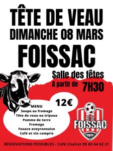 Le samedi 07 février aura lieu la traditionnelle soirée raclette du club de foot à la salle des fêtes de Foissac🥔🧀🍻