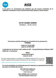 Travaux d’entretien de la végétation nécessaires au bon fonctionnement des lignes à haute tension, prévus du 15/03/2026 au 15/08/2026.
